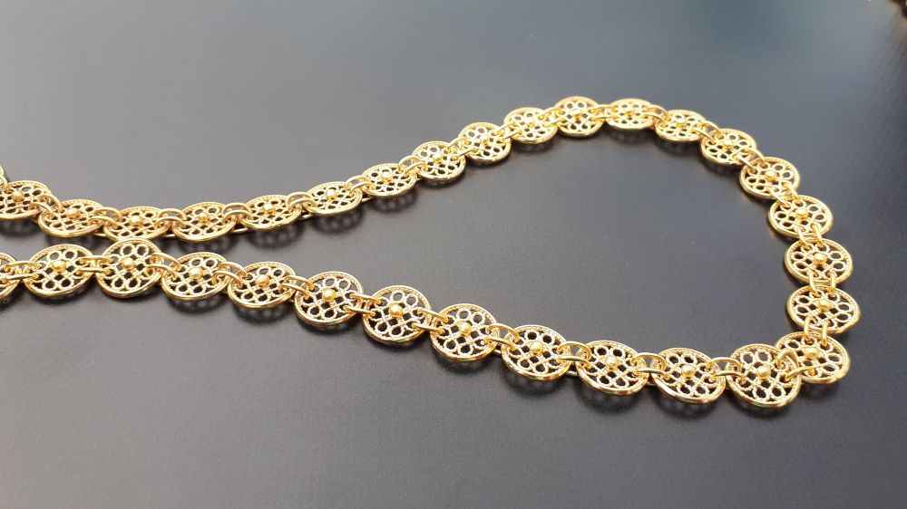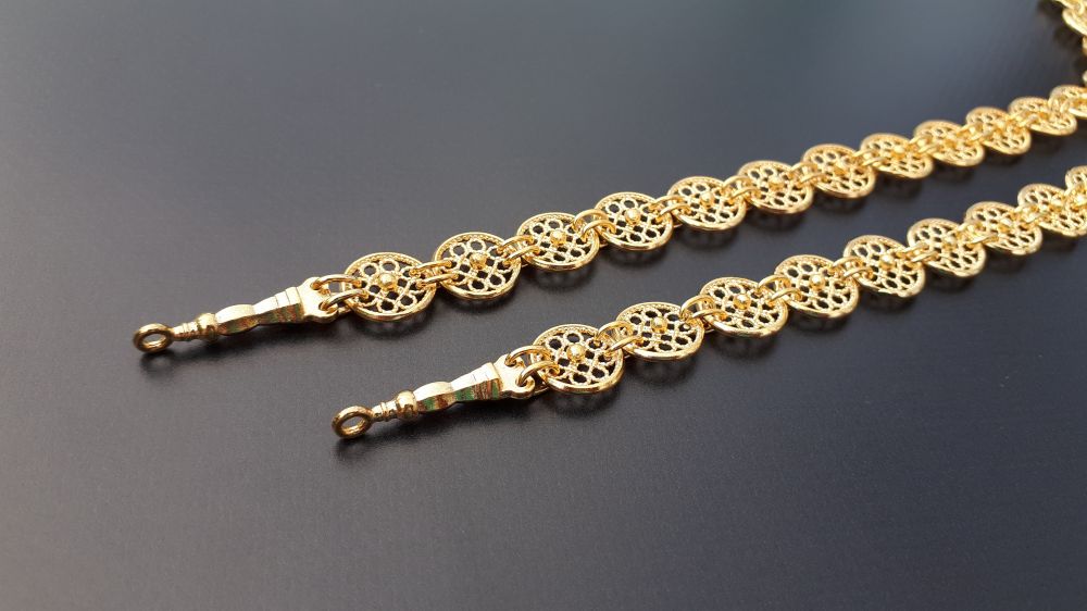 Цепь для наперсных крестов и панагий. Золочёная латунь. Вес - 87 г. Длина – 120 см., регулируемая по длине. Возможно серебрение цепи в латуни, изготовление цепи в серебре.
