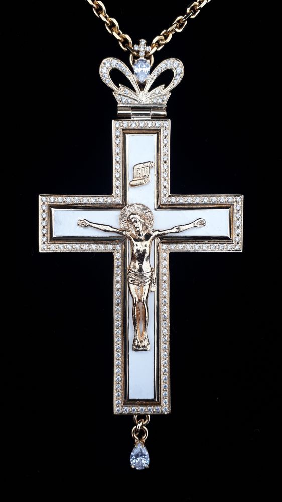 Возможно изменение цвета камней, эмали, изготовление креста в серебре.