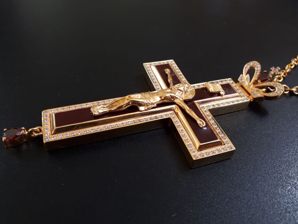 Возможно изменение цвета камней, эмали, изготовление креста в серебре.