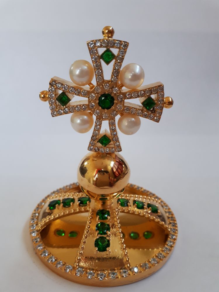 Хрест на митру. Позолочена латунь. Камені – цирконій. Натуральні перли. Можлива зміна кольору каміння та заміна золочення на посріблення.