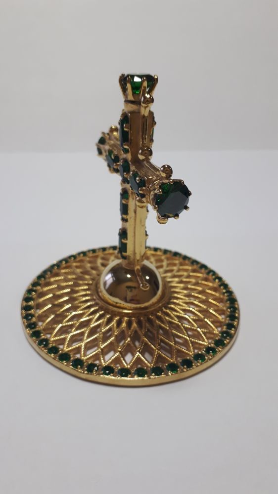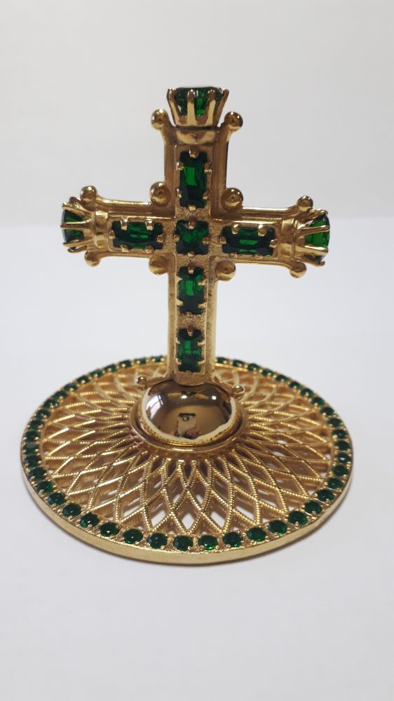 Крест на митру. Золочёная латунь. Камни – цирконий. Возможно изменение цвета камней и замена золочения на серебрение.