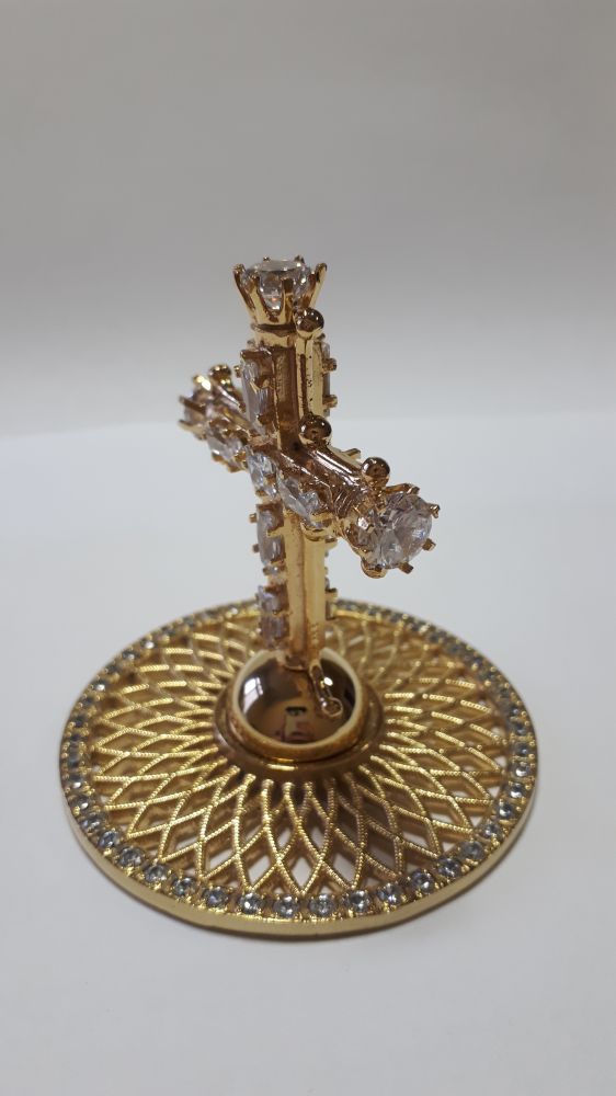 Крест на митру. Золочёная латунь. Камни – цирконий. Возможно изменение цвета камней и замена золочения на серебрение.