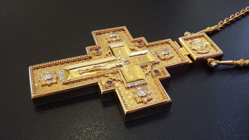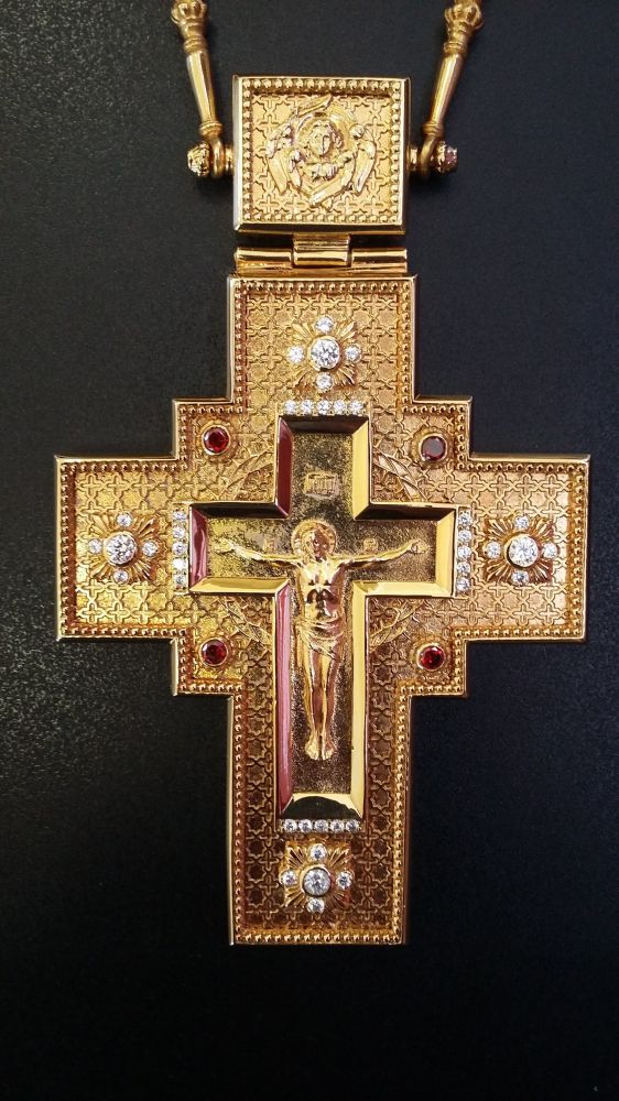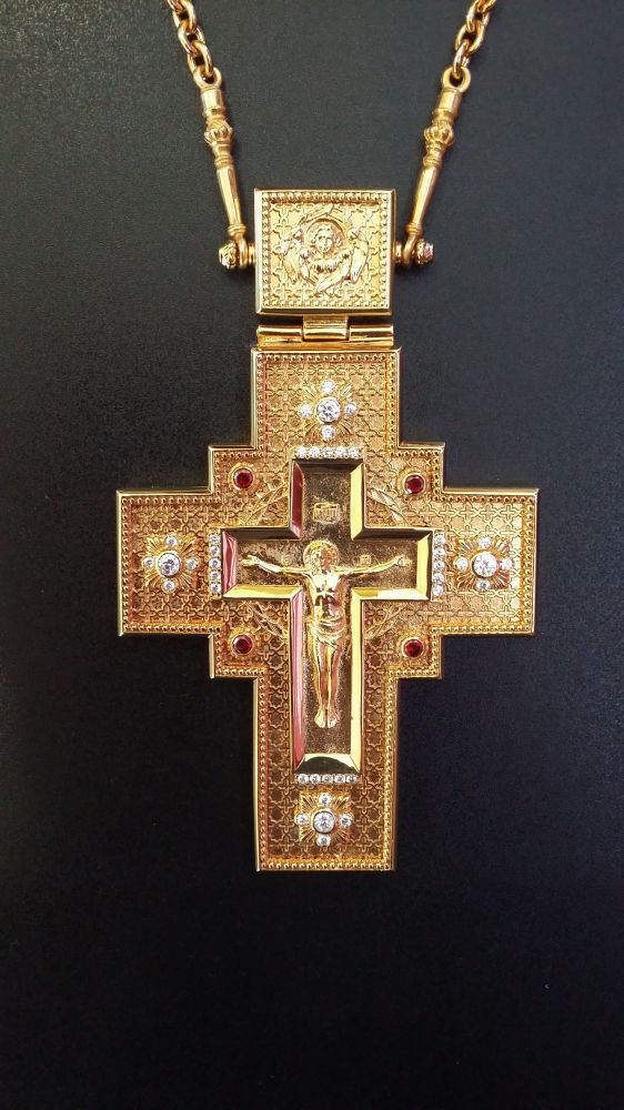 Возможно изменение цвета камней, изготовление креста в серебре.