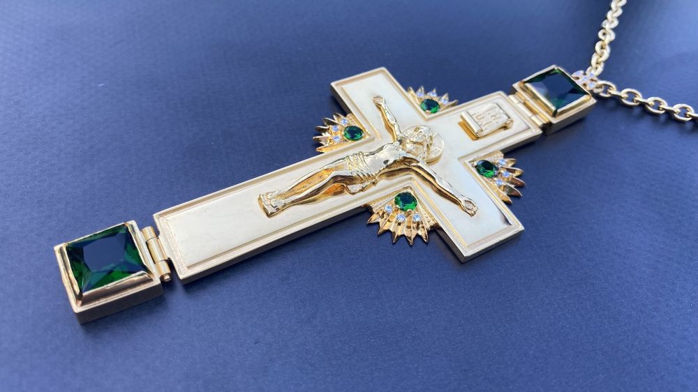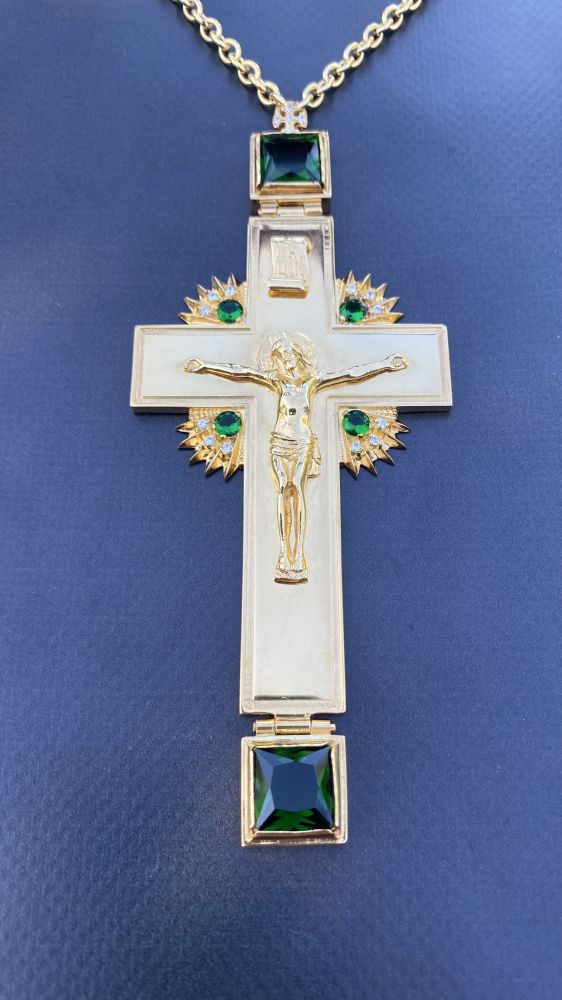 Возможно изменение цвета камней, изготовление креста в серебре.