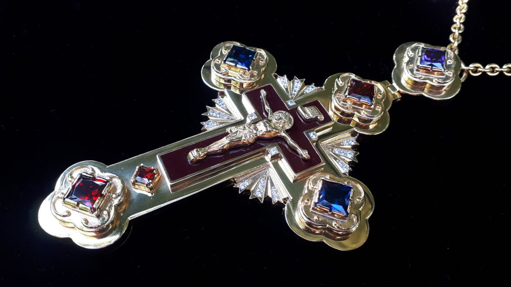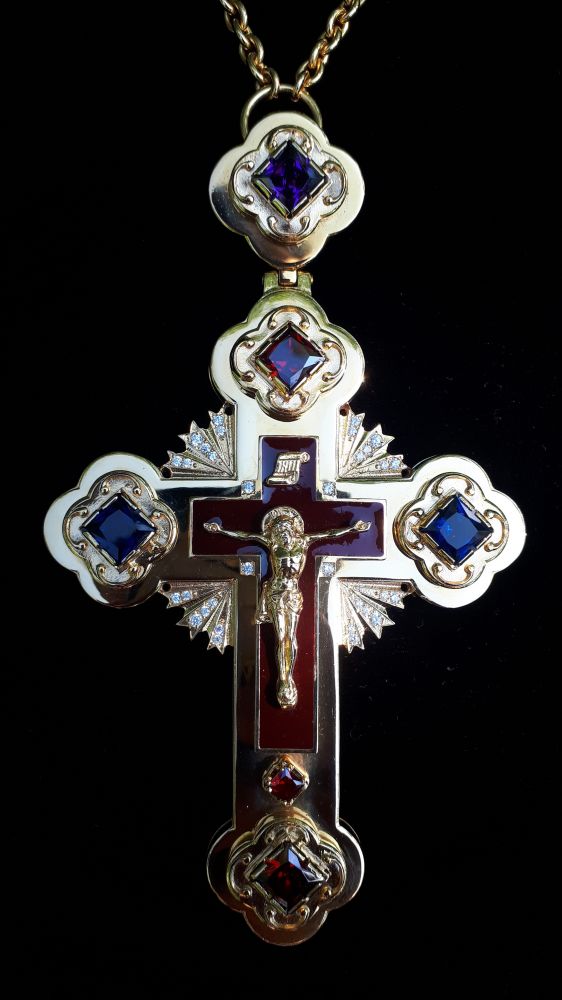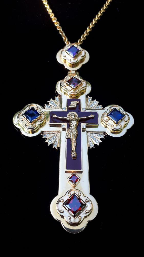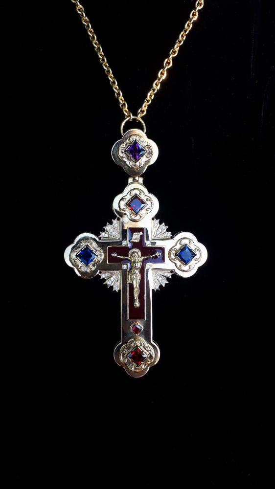 Возможно изменение цвета камней, изготовление креста в серебре.