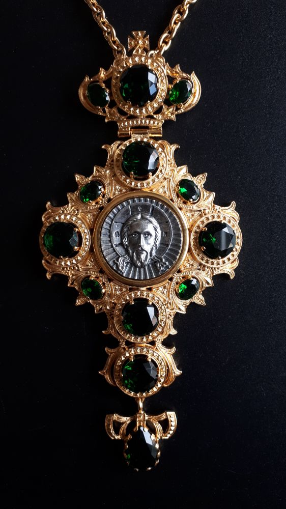 Возможно изменение цвета камней, изготовление креста в серебре.