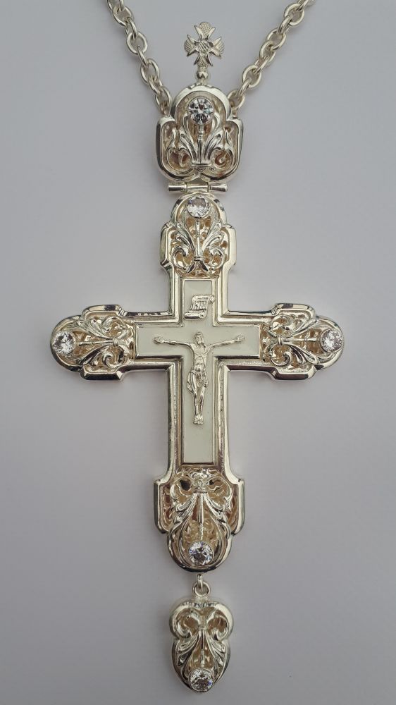 Крест наперсный с белой эмалью