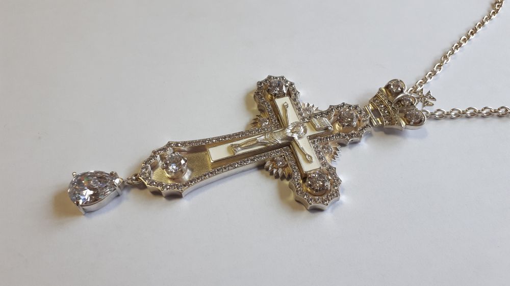 Можлива зміна кольору каміння, емалі, виготовлення хреста у сріблі.