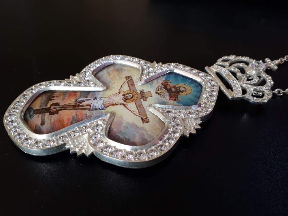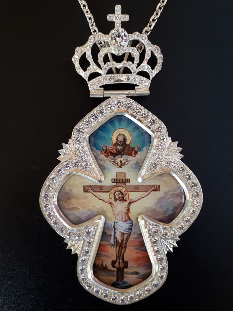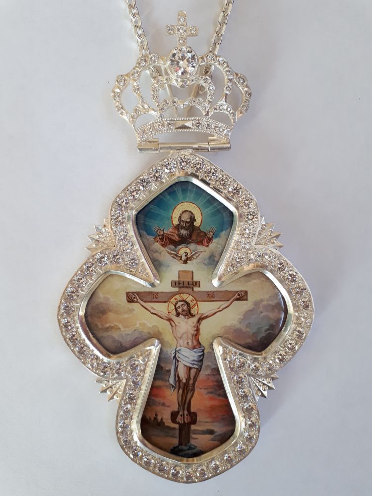 Возможно изменение цвета камней, рисунка, изготовление креста в серебре.