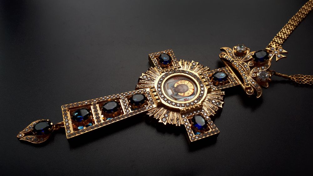 Возможно изменение цвета камней, рисунка, изготовление креста в серебре.