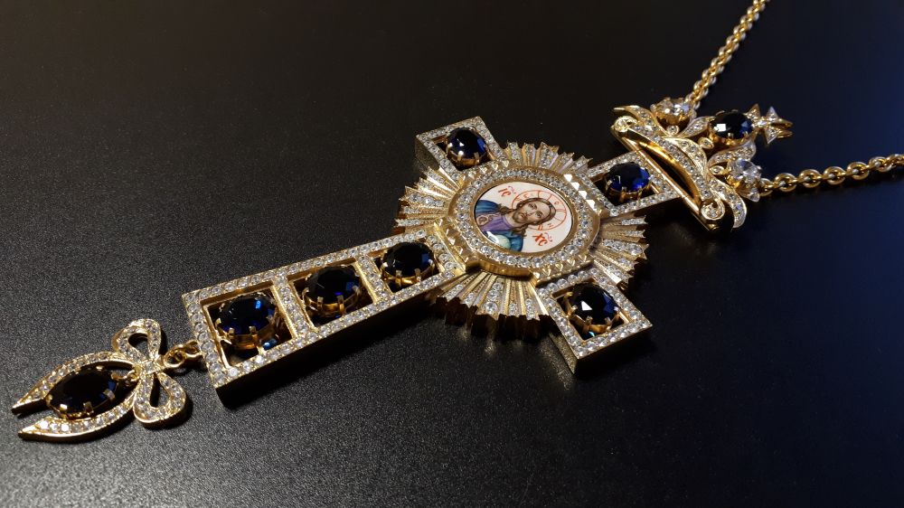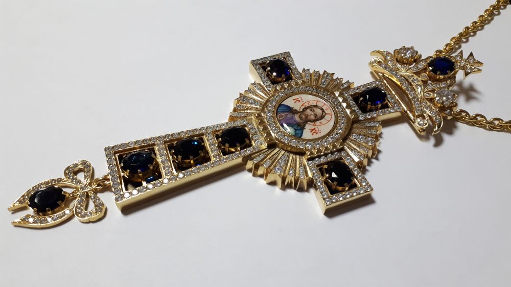 Возможно изменение цвета камней, рисунка, изготовление креста в серебре.