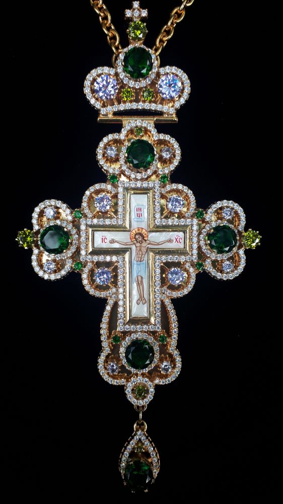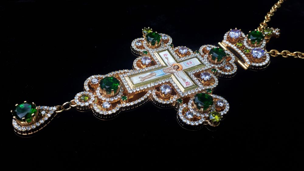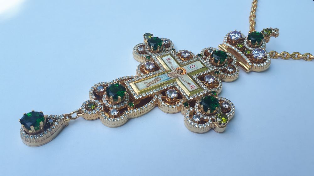 Возможно изменение цвета камней, рисунка, изготовление креста в серебре.