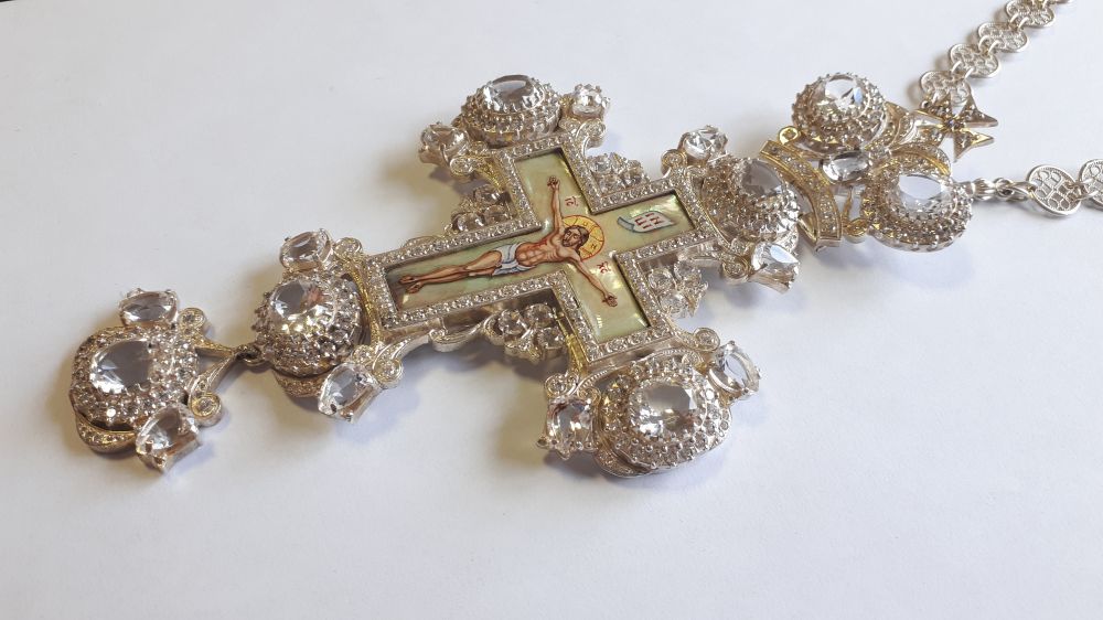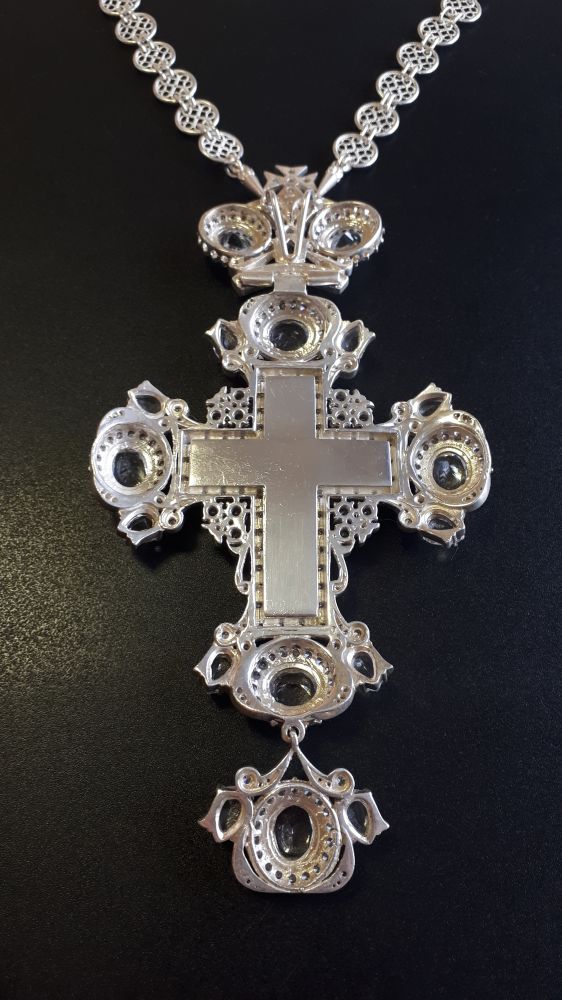 Возможно изменение цвета камней, рисунка, изготовление креста в серебре.