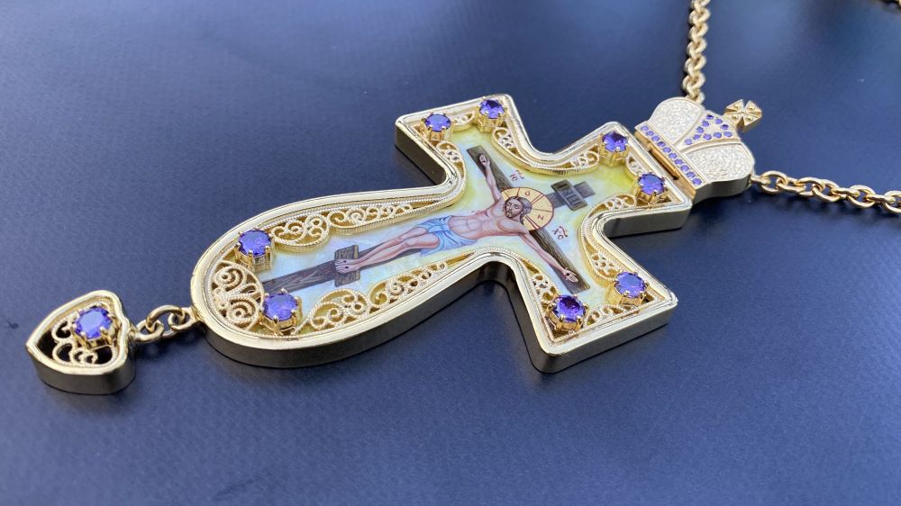 Возможно изменение цвета камней, рисунка, изготовление креста в серебре.