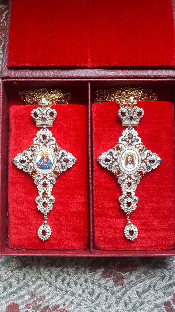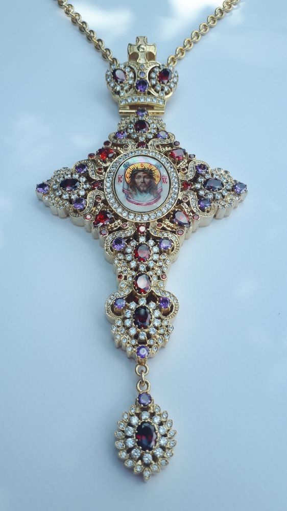 Возможно изменение цвета камней, рисунка, изготовление креста в серебре.