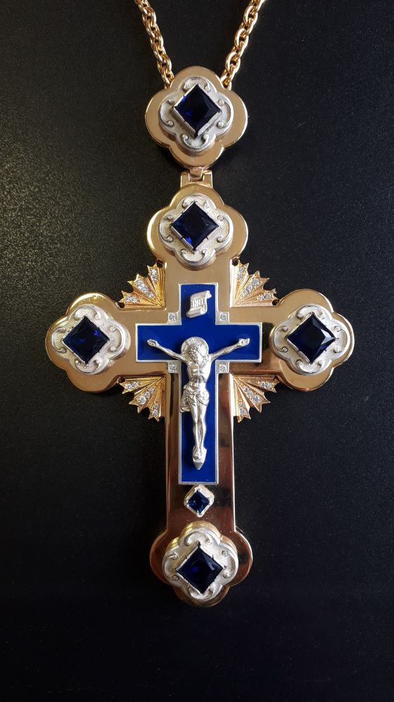 Возможно изменение цвета камней, изготовление креста в серебре.