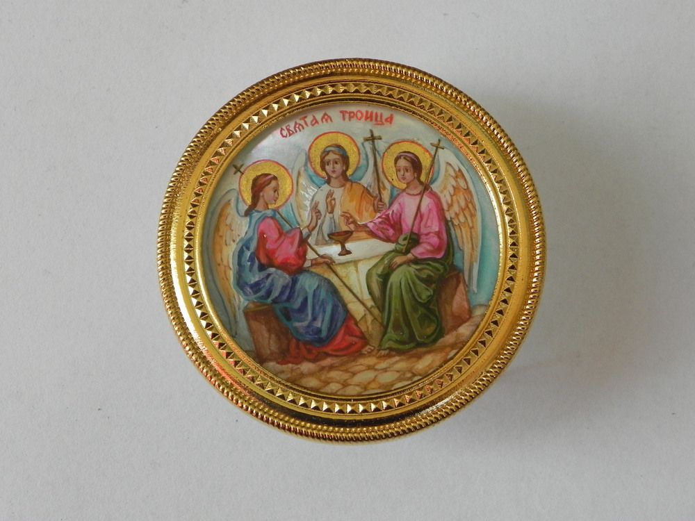 Іконка – ручний розпис на перламутрі, вкритий прозорою емаллю.