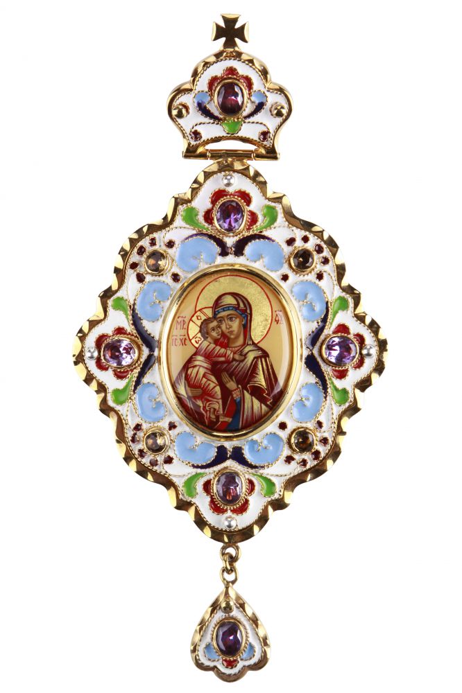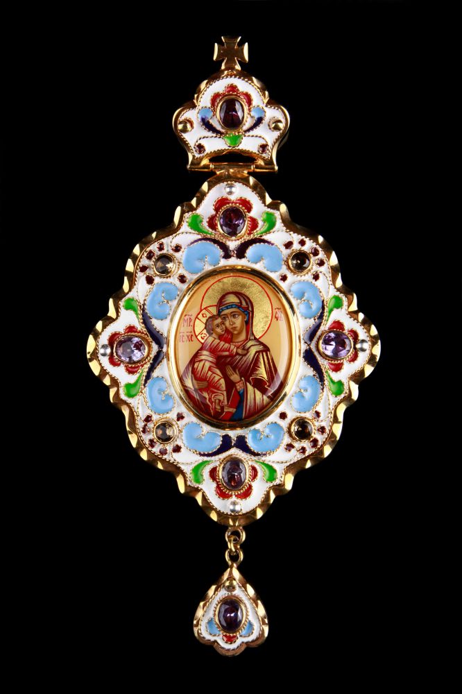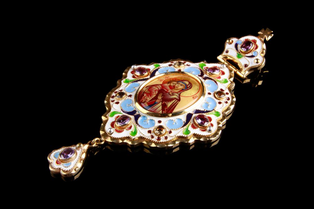 Можлива зміна кольору каміння, малюнку, кольорів емалі, виготовлення панагії у сріблі.