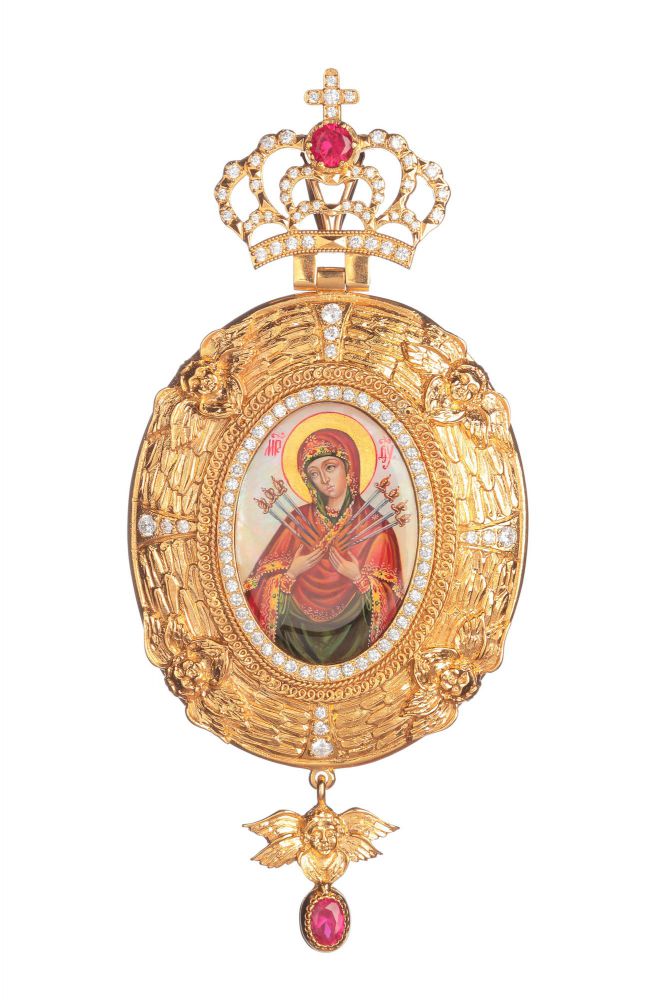 Возможно изменение цвета камней, рисунка, изготовление панагии в серебре.