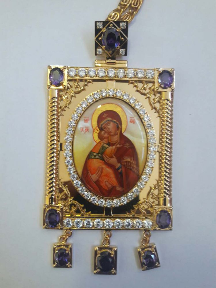 Можлива зміна кольору каміння, малюнка, виготовлення панагії у сріблі.