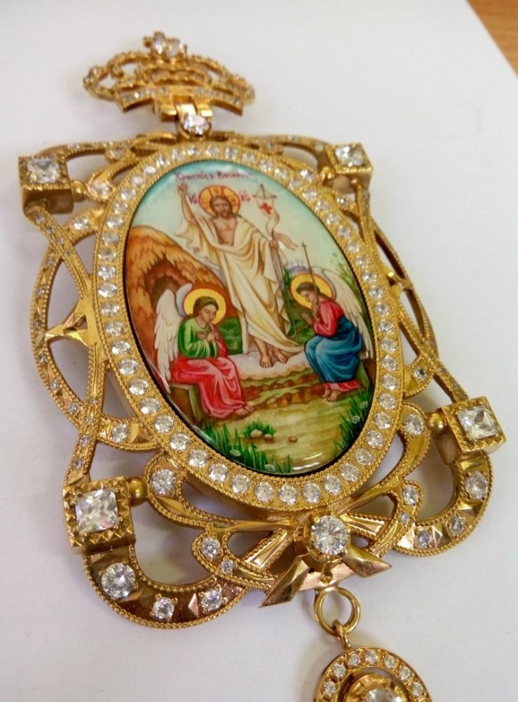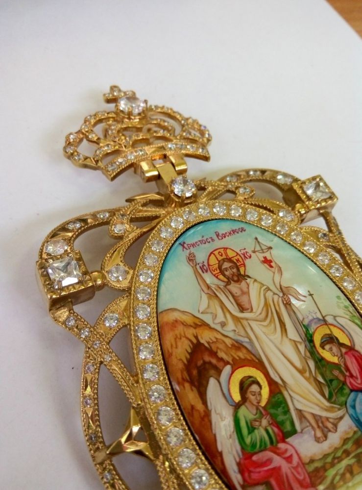 Можлива зміна кольору каміння, малюнка, виготовлення панагії у сріблі.