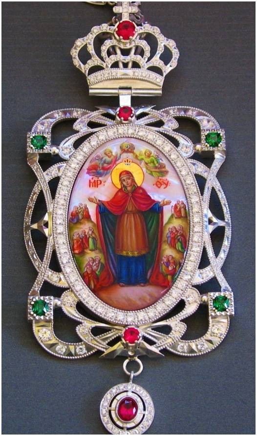 Можлива зміна кольору каміння, малюнка, виготовлення панагії у сріблі.
